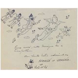 Tintin et ses amis « Aux anges »Encre de Chine pour ce dessin