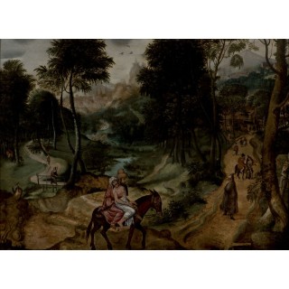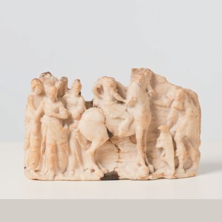 Bas-relief en albâtre sculpté figurant un cavalier au centre et un groupe de femmes sur la gauche, fragment d'une Crucifixion ?.Hai...