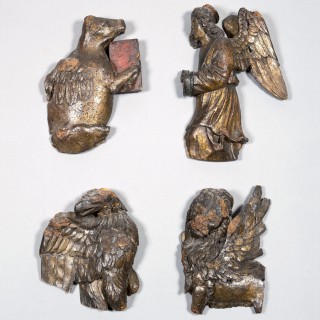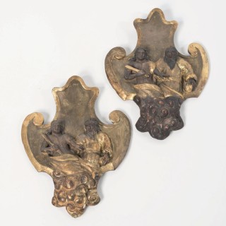 Paire de Cartouches en bois doré et polychromé représentant Dieu ...