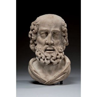 Adalberto de Leon Soto (1919-1957)Tête d'hommeSculpture en marbre blancSigné, daté et situé Paris 1953 au dos45 x 32 x 34 cm