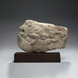 Bas-relief en pierre calcaire sculptée représentant un lion allo ...