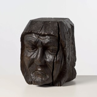 Corbeau en chêne sculpté représentant une tête d'homme.XVe siècleH 37 cm x L 26 cm x P 26 cm(fentes)