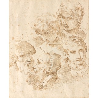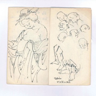 Léonard Foujita (1886-1968)Etudes de Samouraï, Geisha, vieillards, visagesCarnet de croquis, d'après HokusaïSigné, situé et daté "So...