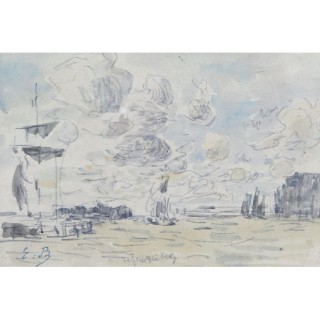 Eugène Boudin (Honfleur 1824-Deauville 1898)Bateau en merCrayon et aquarelleMonogrammé en bas à gaucheDiverse inscription au crayon ...