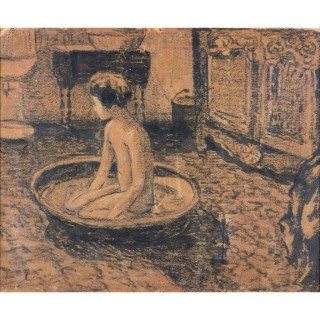 Ecole de la fin du XIXe siècleL’enfant à sa toiletteDessin au fusain et lavis37 × 45 cm à vue