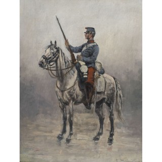 Bas-relief en albâtre sculpté figurant un cavalier au centre et ...