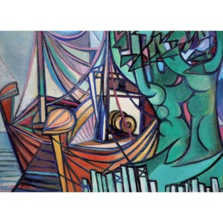 Georges-Henri Pescadère (1915-2003)Bateaux, 1985 Huile sur toile, 15 mai 198561 x 81 cmProvenance : Acquis auprès de la famille de l...