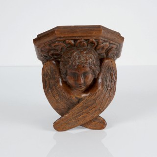 Petite console en noyer sculpté à décor d'une tête d'angelot ; p ...