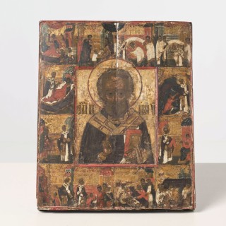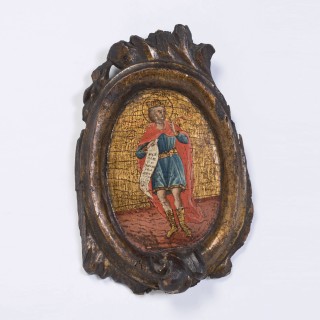 Tableau peint sur fond or à décor d'un saint personnage tenant u ...