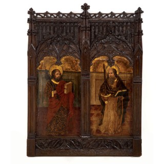 Partie de retable en chêne sculpté en fort relief représentant s ...