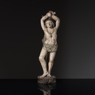 Saint Sébastien en noyer sculpté en ronde-bosse et polychromé. I ...