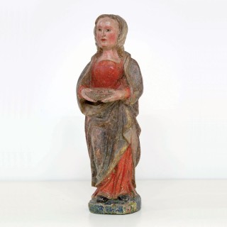 Sainte Lucie en bois sculpté, polychromé et doré, dos creux et r ...