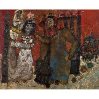 Théo Tobiasse (1927-2012)Histoire de la Reine EstherHuile sur toileSignée en haut à droite, datée 74, titrée en bas à gauche79 x 88 cm