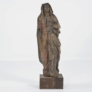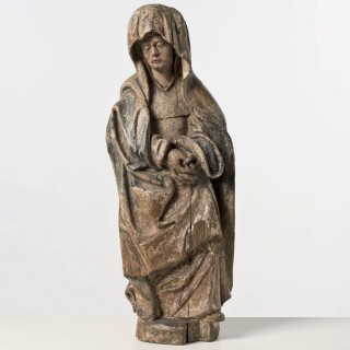Vierge à l'Enfant en noyer sculpté avec infimes restes de dorure ...