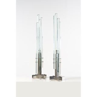 Gallotti & Radice Paire de lampes Verre et métal chromé ...