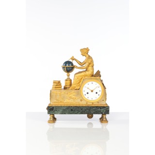 Pendule à l'astronomie en bronze doré et patiné à décor d'une allégorie de l'astronomie sous