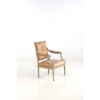 Trois chaises en bois mouluré, peint et sculpté à dossier médaillon en cabriolet, à décor de