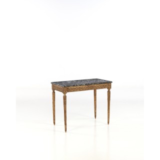 Console en bois doré à décor ajouré de coquille, guirlandes, agr ...