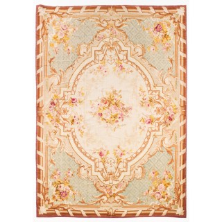 Tapis d'Aubusson à large médaillon central ivoire , à décor de b ...