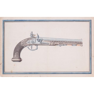 Ecole française du début du XIXe siècle Projet de pistolet à silex, modèle de luxe