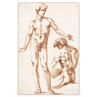 Giovanni BANDINI (Florence, 1540-1599) Académie d'homme debout et un assis de troisquarts de dos