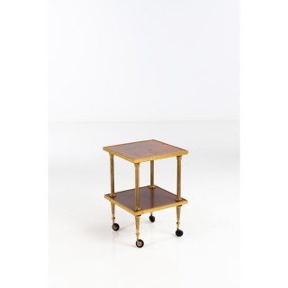 Paire de guéridons circulaires en bronze doré et placage d'acajo ...