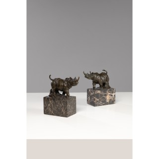Paire de petits socles en marbre rouge veiné et bronze ciselé do ...