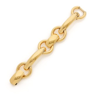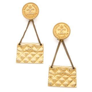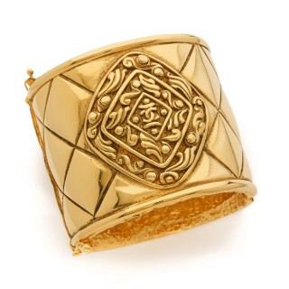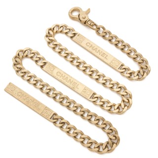 CHANEL - 2003 CEINTURE articulée en métal doré, breloque chaîne siglée, fermoir signé