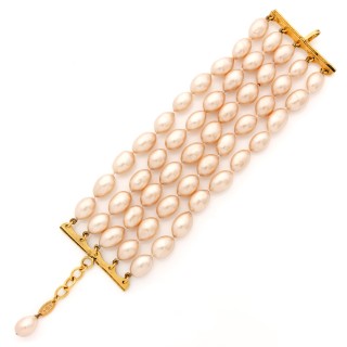CHANEL CEINTURE composé de cinq rangs tubogaz en métal doré, boucle siglée en plexiglass noire