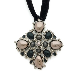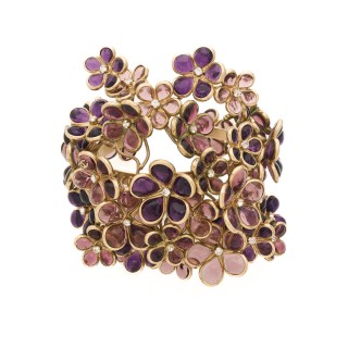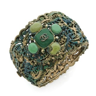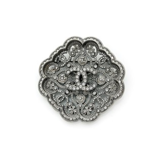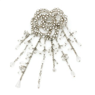 CHANEL - Printemps-été 2005 CEINTURE entrecroisée en métal argenté strassé rehaussée de petits cabochons en simili béton, motif cent...