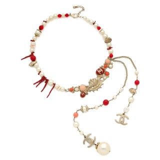 CHANEL - 2004 CEINTURE chaîne en métal argenté et perles pastels, breloques siglées
