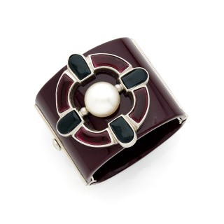 HERMES MANCHETTE ouverte en plexi laissant apparaître une agate