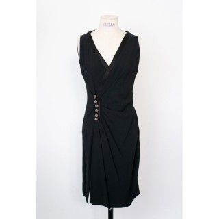 CHRISTIAN DIOR BOUTIQUE X JOHN GALLIANO - 2000's ROBE drapé en crêpe viscose noir ornée de boutons bombés perlés