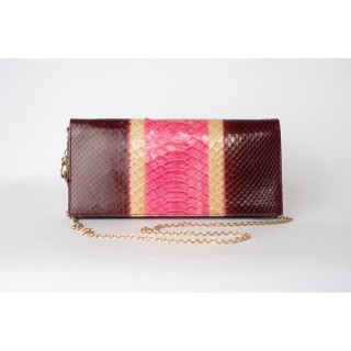 BOTTEGA VENETA ROBE DU SOIR en crêpe de soie nude et rose fluo, polyester noir et triacétate façonné damier, effet d'enduction mordorée