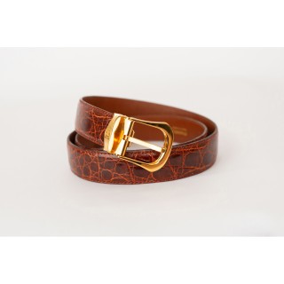 CHANEL CEINTURE en cuir brique façon crocodile, boucle en métal doré siglée