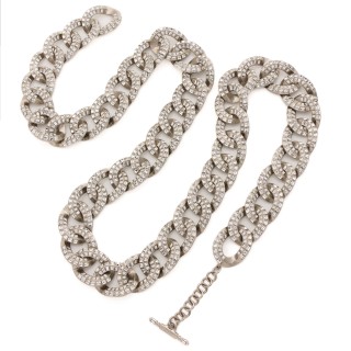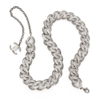 CHANEL CEINTURE composée de gros maillons en métal argenté strassé