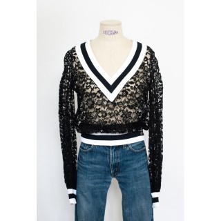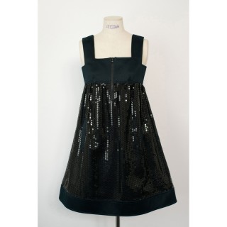 COURRÈGES ROBE BABY DOLL pailletée rehaussée de satin noir