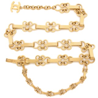 CHANEL CEINTURE chaîne en métal doré entrecoupée de motifs rectangulaires signés et siglés