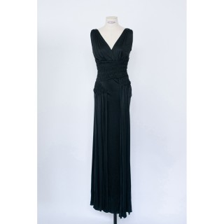 CHRISTIAN DIOR BOUTIQUE X JOHN GALLIANO - 2000's ROBE en jersey de soie et viscose noir, effet de large taille smockée se transforma...