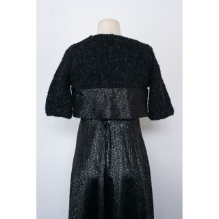 CHANEL - 2007 ENSEMBLE DU SOIR en lamé de soie mélangée façonné noir : ROBE bustier baleinée avec poitrine légèrement drapée et effe...