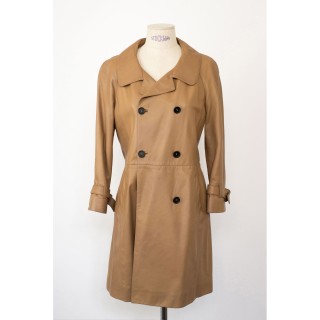 CHANEL CEINTURE en cuir chocolat au lait façon crocodile, boucle en métal doré signée