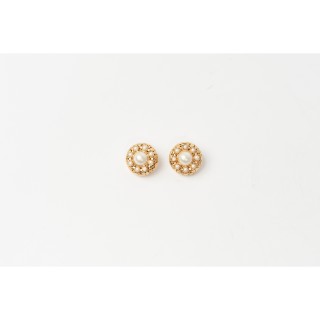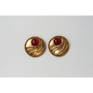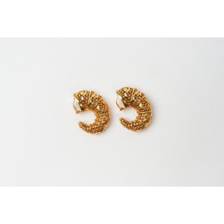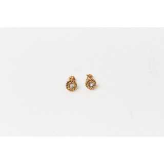 CHANEL PAIRE de BOUTONS DE MANCHETTE en métal doré torsadé et strass