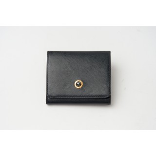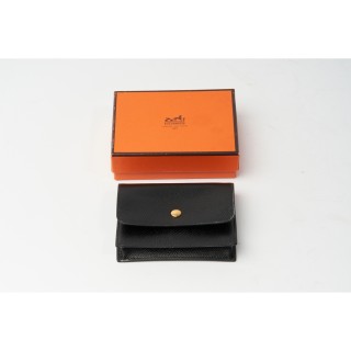 HERMÈS PORTE-MONNAIE en cuir grainé noir, pression en métal doré
