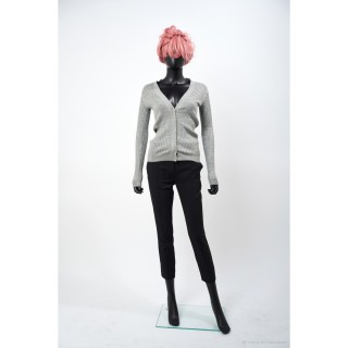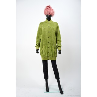 PRADA GILET en jacquard lurex et laine rose, cuivré, argenté et ciment