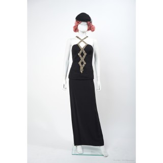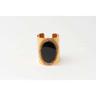 SYLVIA TOLEDANO MANCHETTE en métal doré, cabochon en verre noir