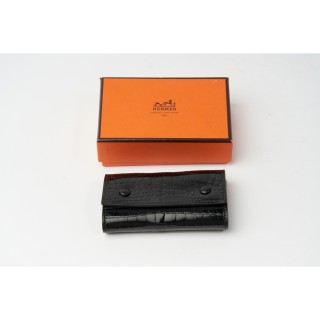 HERMÈS ÉTUI PORTE-CLÉS en crocodile d'estuaire (Crocodylus porosus) II/B noir, métal doré