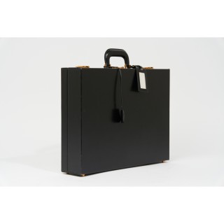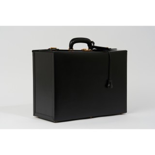 HERMÈS PILOT-CASE dite "MALLETTE PORTE-HABITS" en box noir, garnitures en laiton doré, clés sous clochette, porte adresse, intérieur...