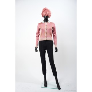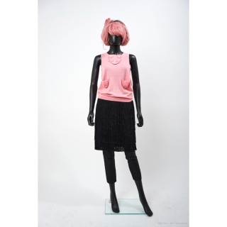 ZHOR & NÉMA PULL-OVER sans maches en cachemire rose, petit plastron boutonné