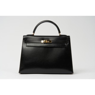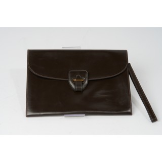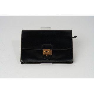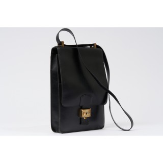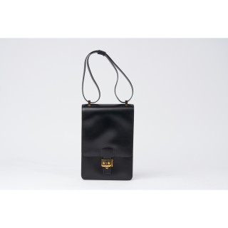 HERMÈS MALLETTE à PAPIERS en box noir, garnitures en laiton doré, clés sous clochette, porte-adresse, intérieur en cuir bordeaux