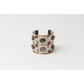 SYLVIA TOLEDANO MANCHETTE en métal chromé, nacre burgau et perles de culture d'eau douce